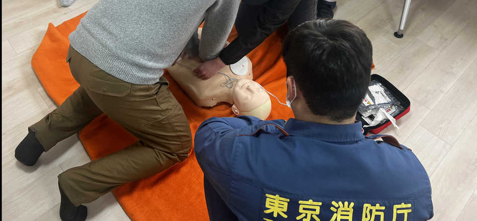 調布市消防署職員を講師に招き、万一の際の応急手当(心肺蘇生法、AEDの取扱いなど)ができるよう講習会を行いました。
